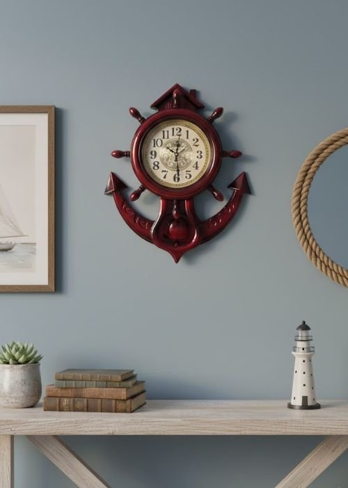 Anchor Wall Clock With Pendulum Golden Dial Antique Model