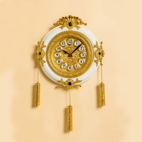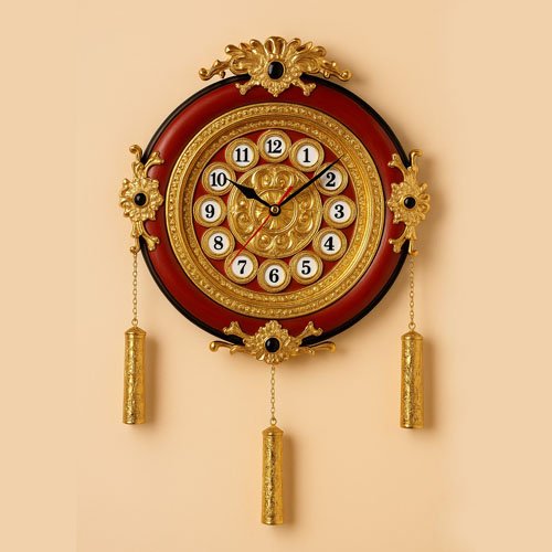 Royal and Gold Plated Hanging Strings Wall Clock in Black, Maroon and White